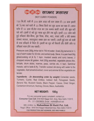 An authentic blend of finely grounded spices Chosen carefully to deliver an exquisite taste to South Indian delicacy Lends a perfect taste, aroma and texture to the dish with a zesty flavour Ideal to relish restaurant-style Sambhar at home